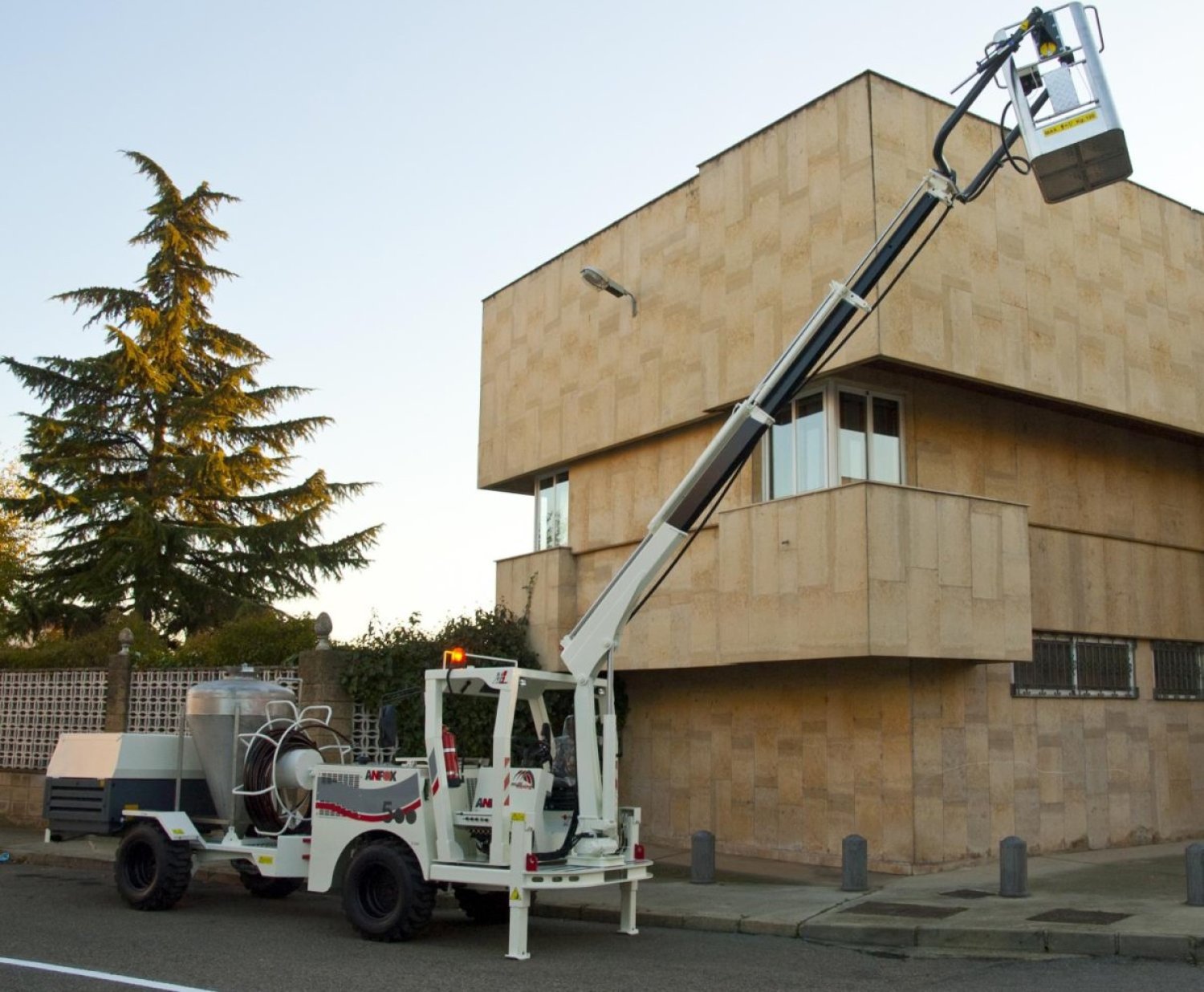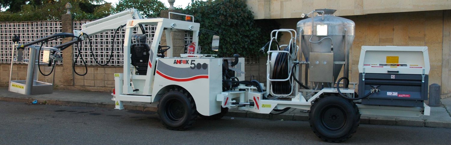 Incorpora compresor eléctrico de 7 bar con tomas de aire y mandos para la inyección de la nagolita y enrolla-manguera conectada al depósito de presión homologado, según la norma vigente de equipos a presión.