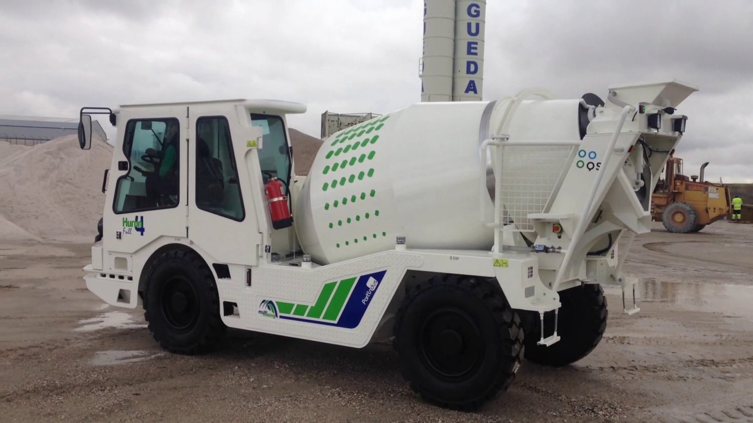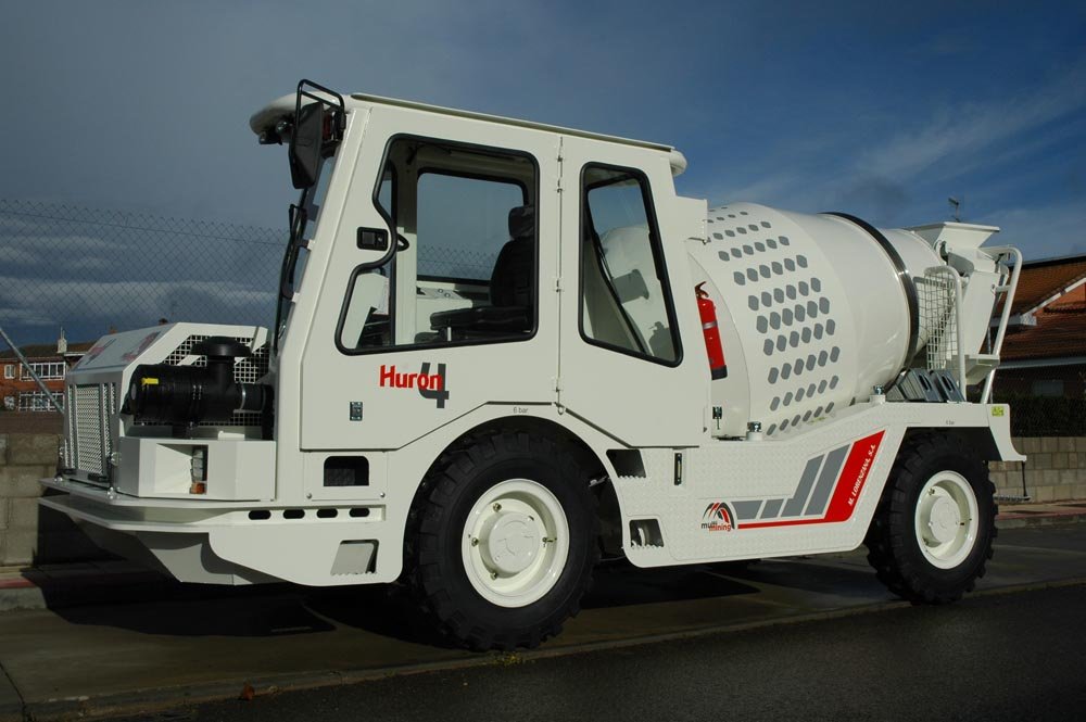 Equipo hormigonera de 4 m3, de reducidas dimensiones para transportar y mezclar hormigón, en seco o en húmedo, en túneles y galerías de bajo perfil.
